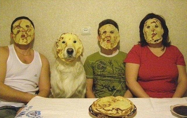 Блины на лицах за столом.