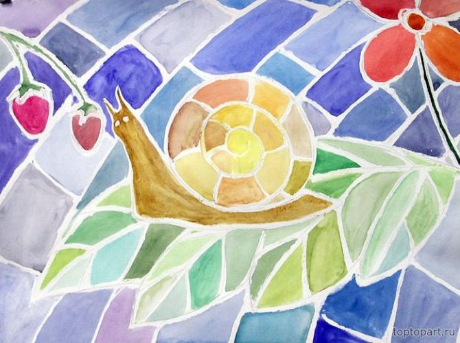 Набросок улитки в технике мозаики.