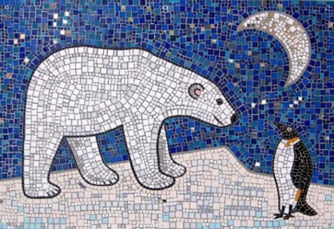 Изображение медведя и пингвина мозаикой.
