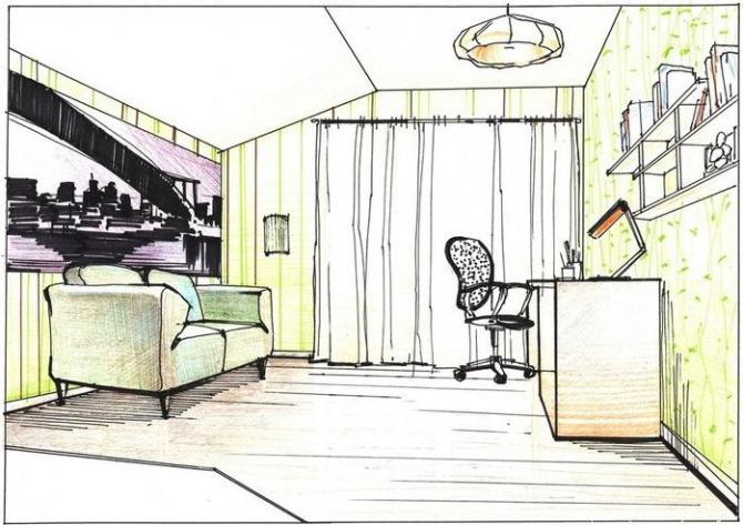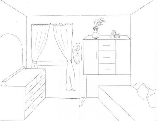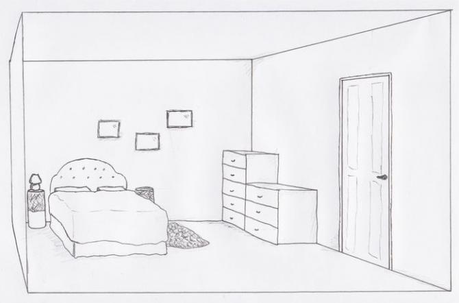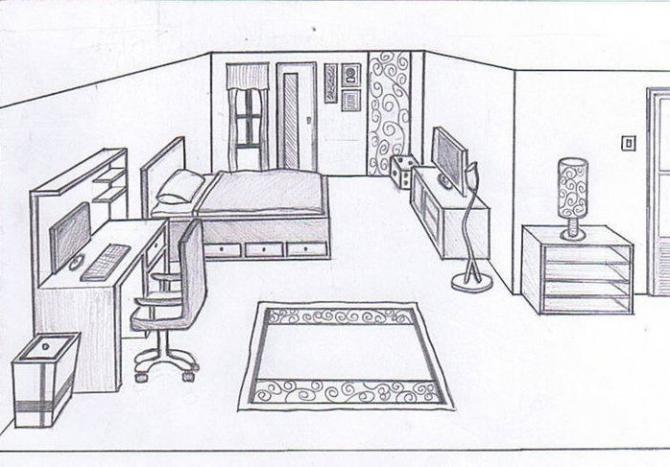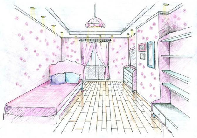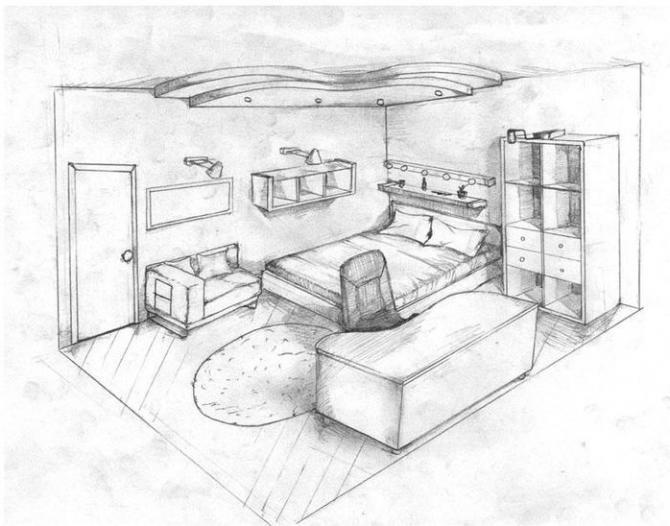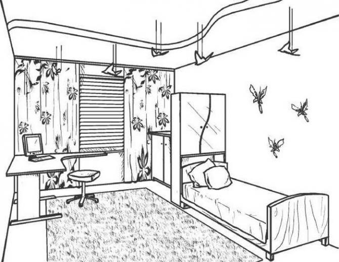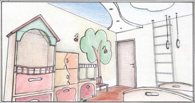 Ребяческая комната набросок карандашом.