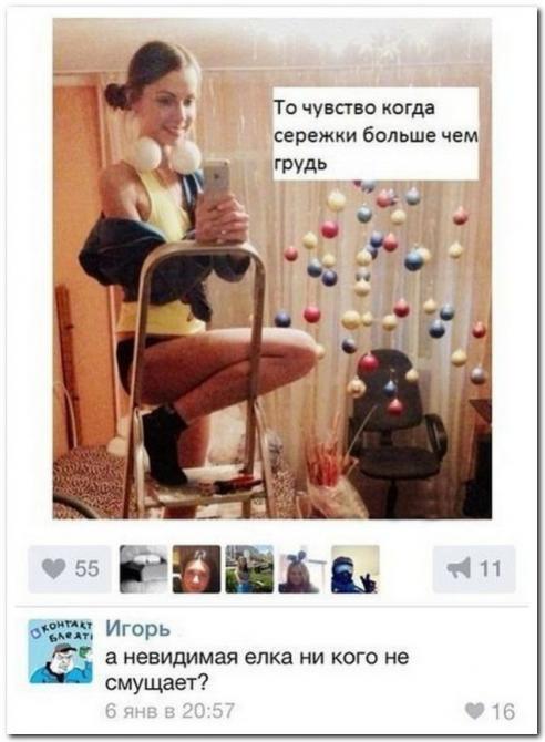 Забавные фото из соцсетей, сразу кидаются в глаза, в необыкновенности наружный вид и необычное поведение героев прикольных снимков бьют все рекорды. Забавно наблюдать за таковыми отчетами о праздниках и торжествах в те моменты, когда поведение становится раскованнее с каждой минуткой. А над фото уснувших жертв вообщем невероятно не засмеяться. … Фото приколы социальных сетей однозначно продлевают жизнь, так как заставляют смеяться и довольствоваться каждой прожитой минутке. Поглядите прикольные фото из сетей, смейтесь и радуйтесь!