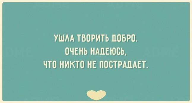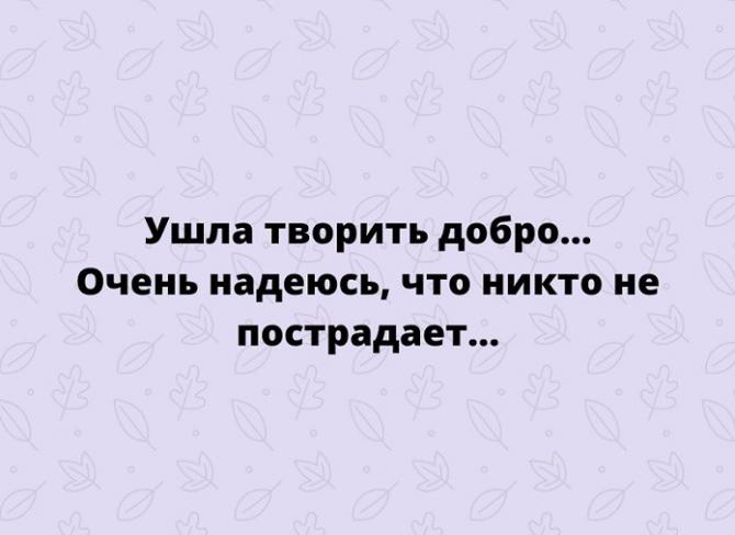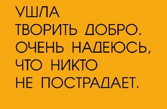 Ушла творить благо, надеюсь, никто не пострадает.