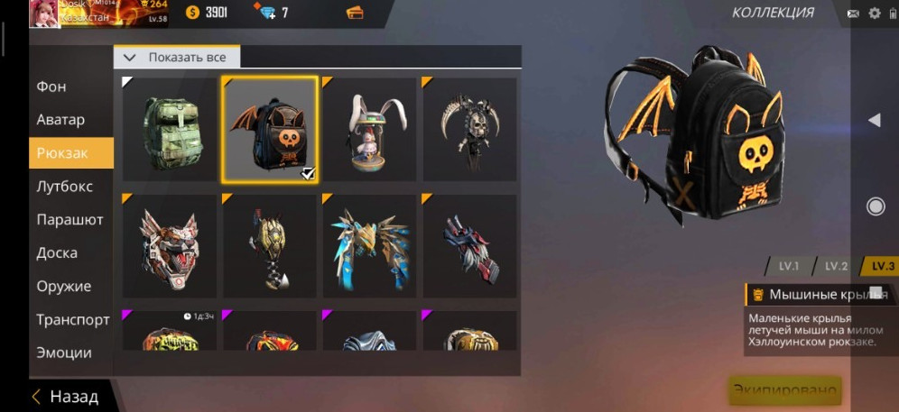 Выбор рюкзаков из Фри Файер.