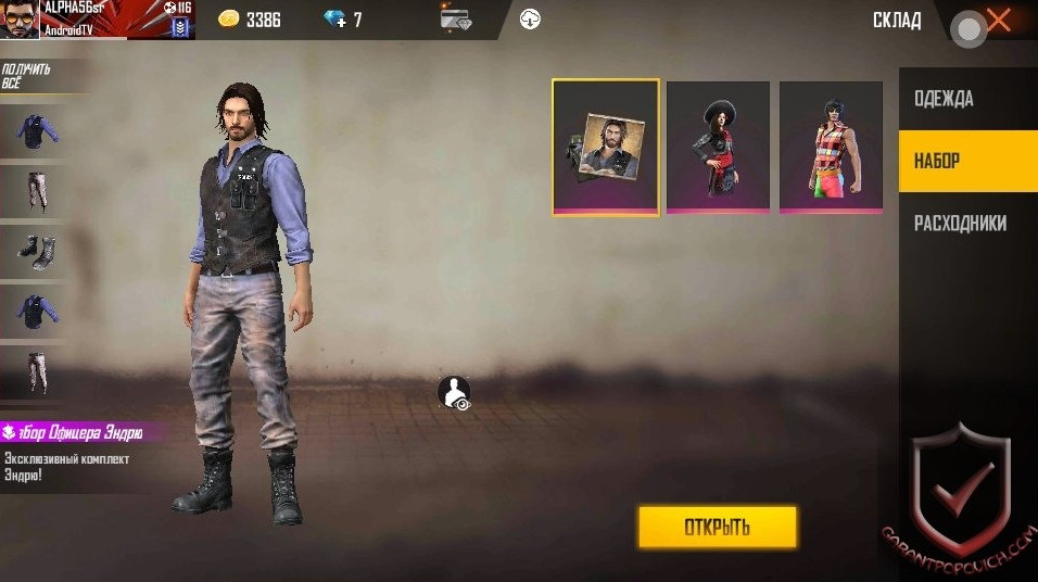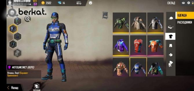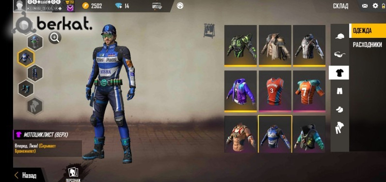 Выбор одежды персонажа.