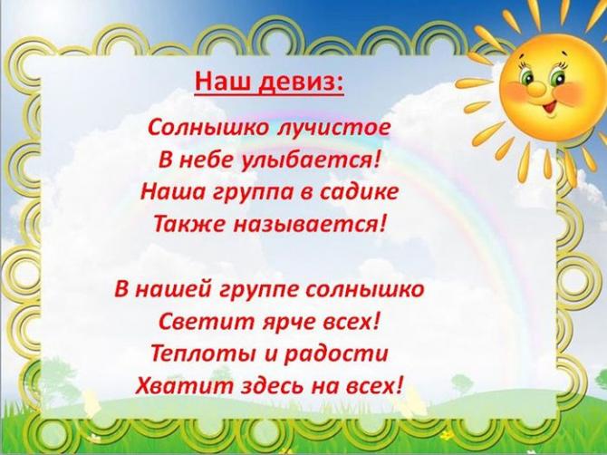 В ребяческом саду деток делят на группы. Чтобы любая из них была неповторима, их по разному называют и соответственно у них разное оформление. Таковым образом с первого взора можно определить в которой группе находится дошкольник, а верный дизайн создаст приподнятое настроение у детей. В данной подборке собраны фото картинки для дизайна группы солнышко. А в качестве девиза можно использовать последующие строчки: -Мы малюсенькие лучики, мы солнышка дети. Весёлые и неустрашимые девчонки и мальчишки!