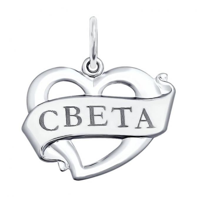 Кулон сердечко с именованием Света