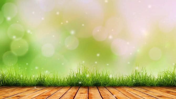 Древесный пол и травка.