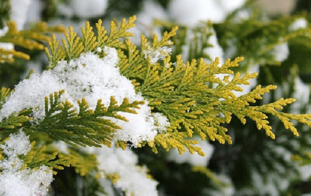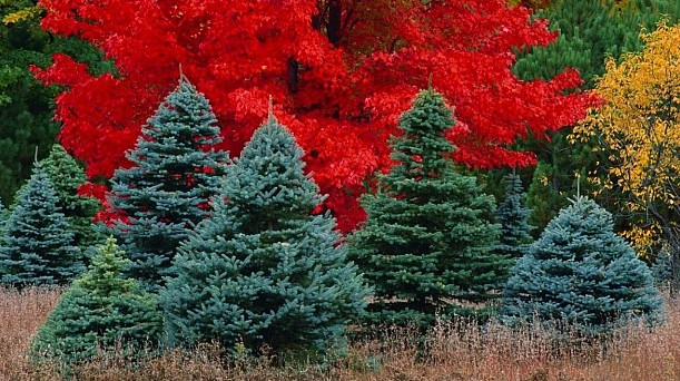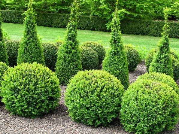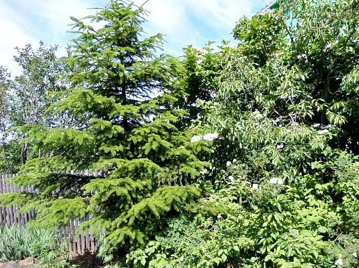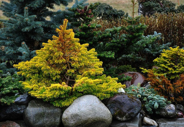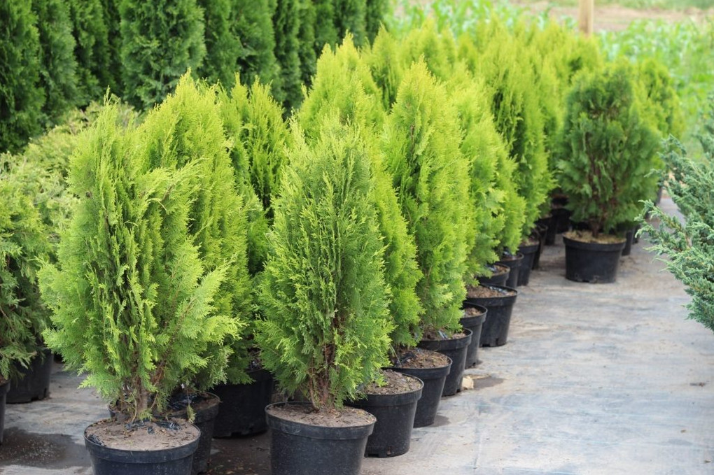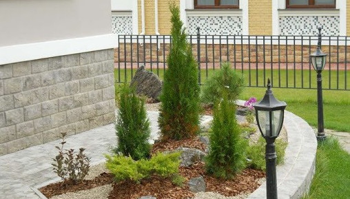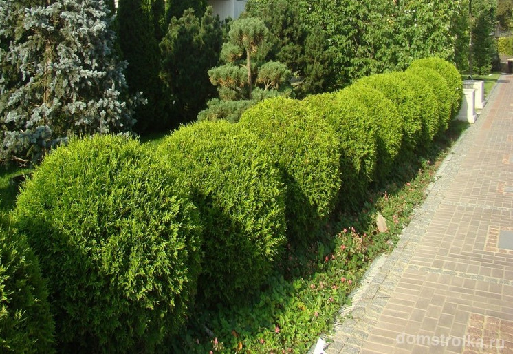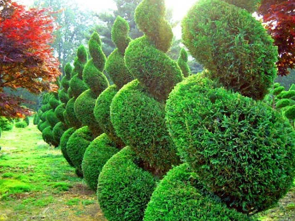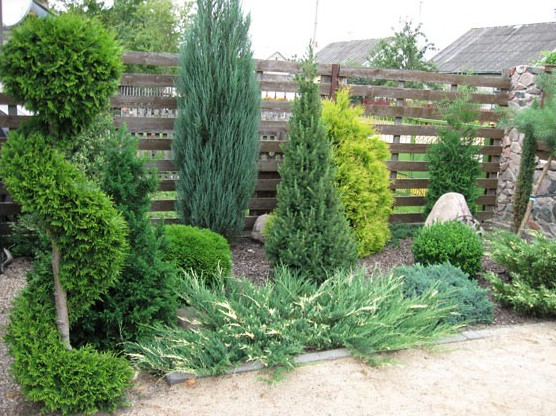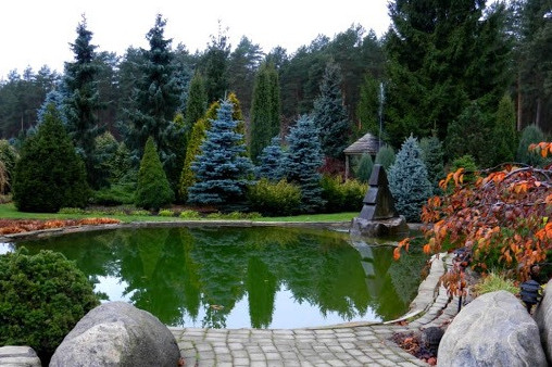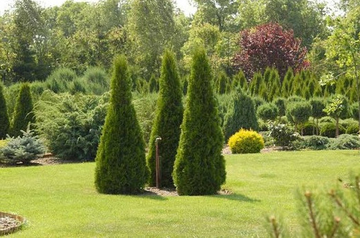 Парк, зеленоватая зона, сосны, туи, пихты.