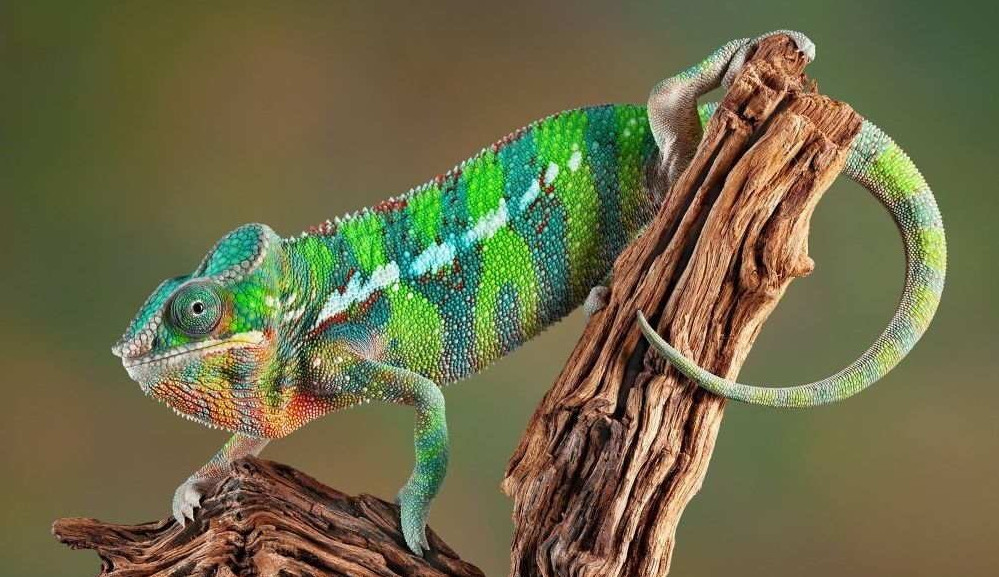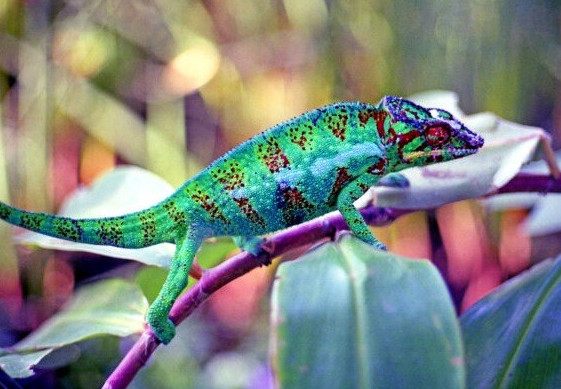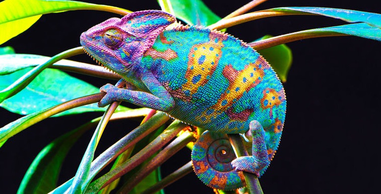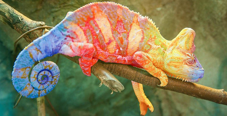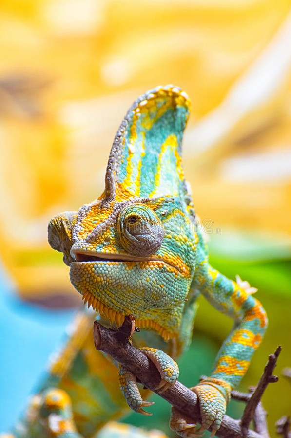Красочный разноцветный хамелеон.