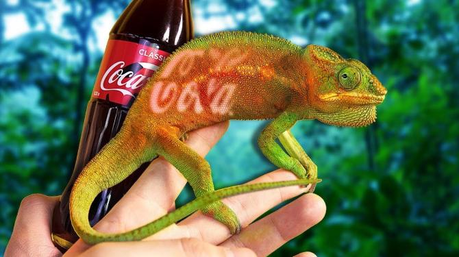 Хамелеон притворился Кока Колой.