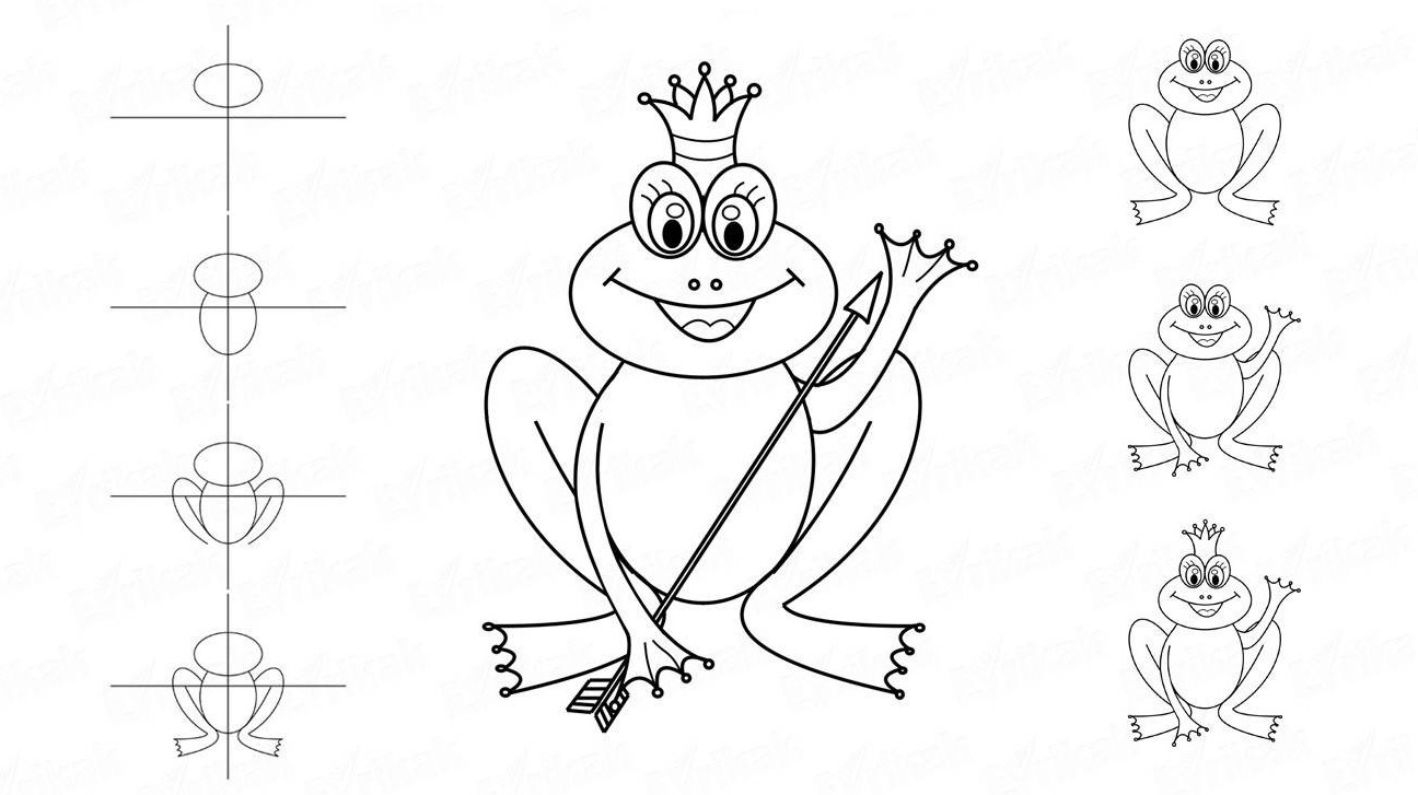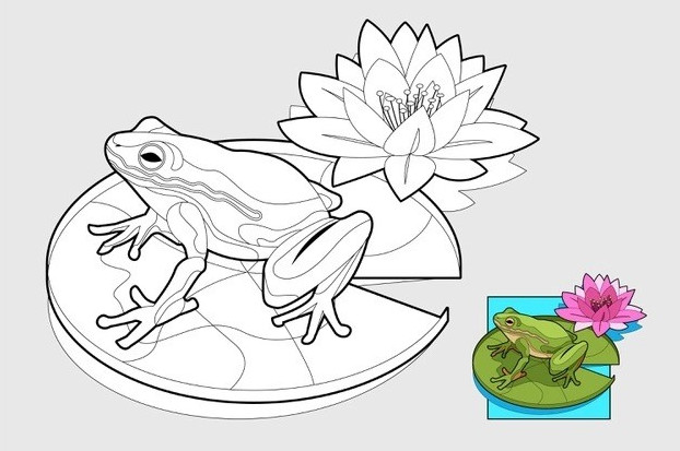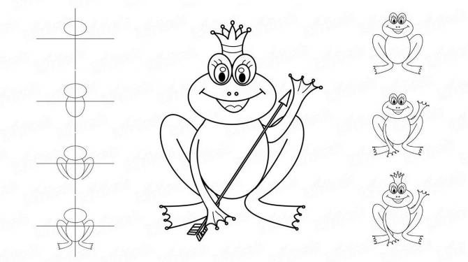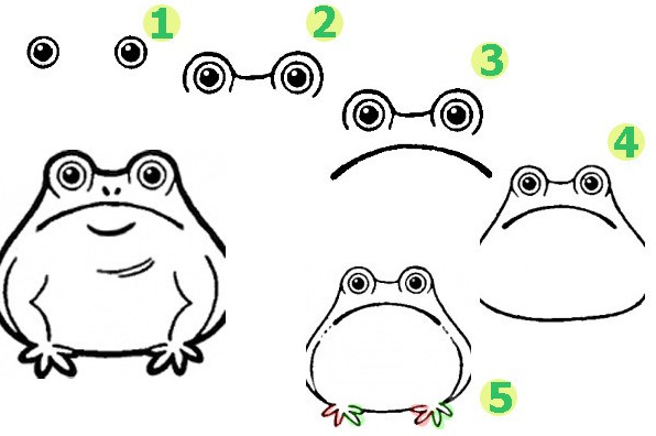 Набросок лягушки для срисовки.