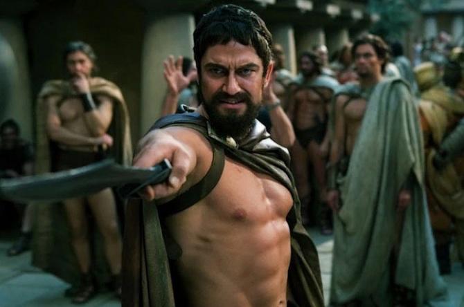 Леонид с клинком в руке.