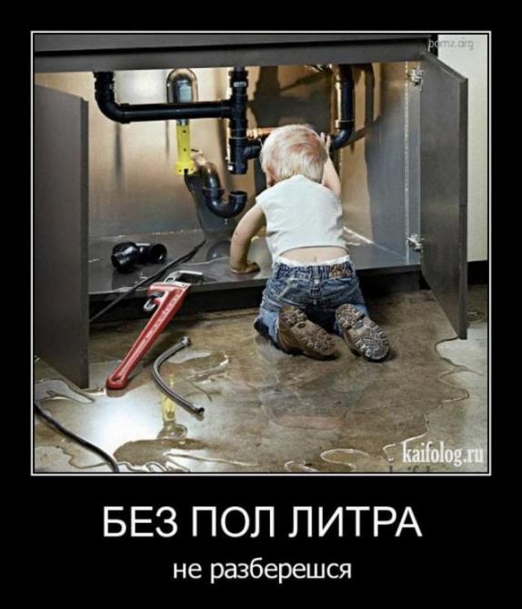 Ребенок чинит сантехнику.