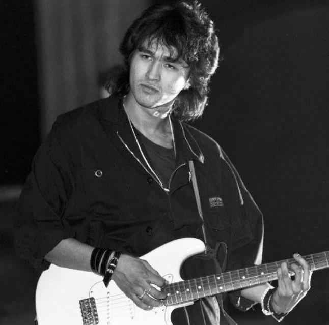Виктор Цой с гитарой.