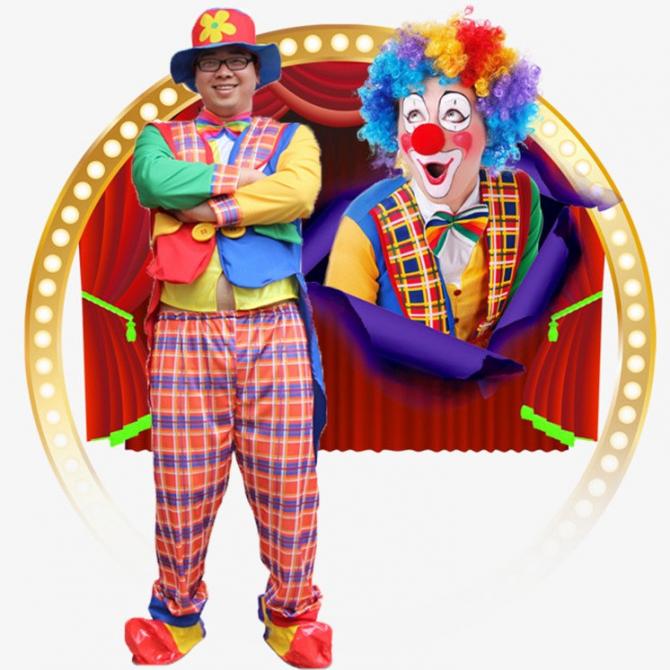 Разноцветный клоун в костюмчике.