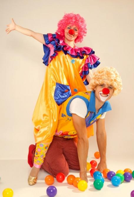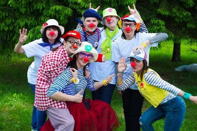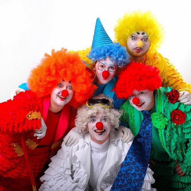Радостные клоуны на природе.