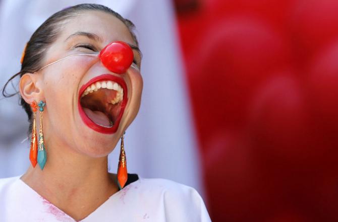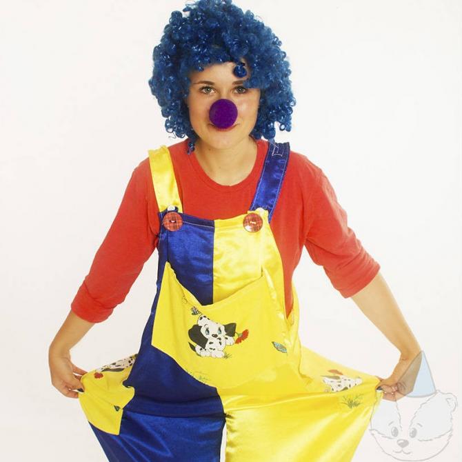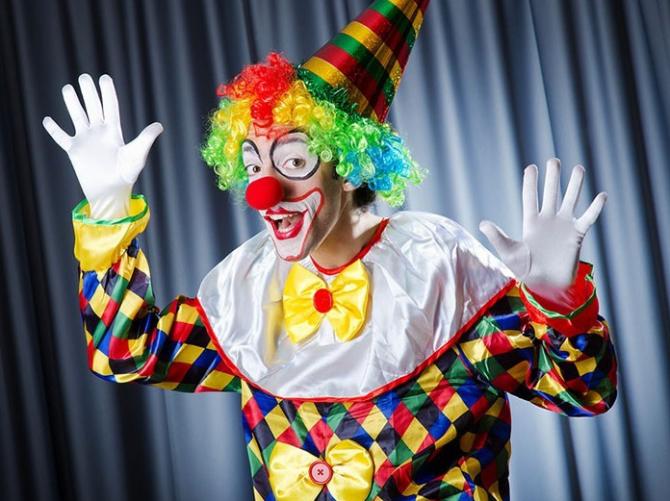 Радостная клоун усмехается.