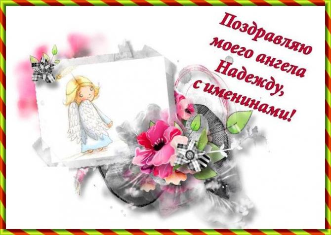 Поздравить Надежду можнож с помощью красивых открыток с пожеланиями. Дальше предлагаем посмотреть и безвозмездно скачать рисунки С деньком ангела Надежда.