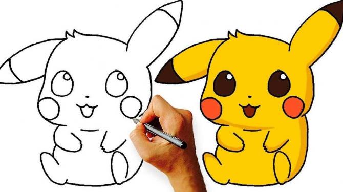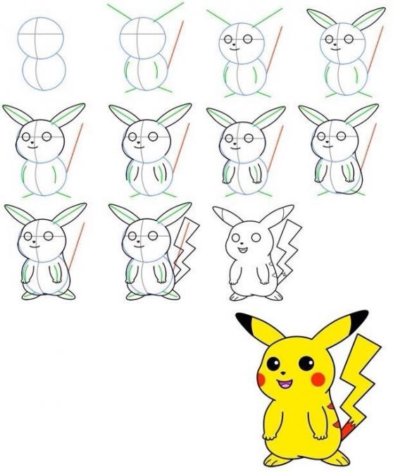 Пикачу поэтапно для срисовки.