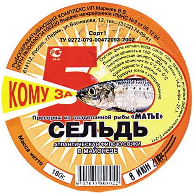 Этикетка сельди на прикольной картинке.