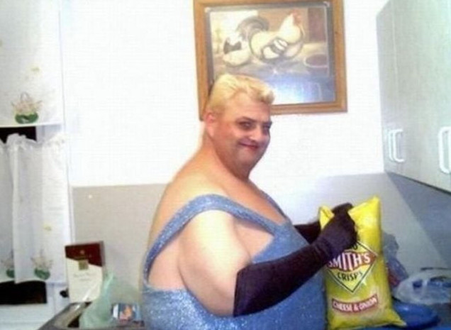 Прикольный мужчина в женской одежде.