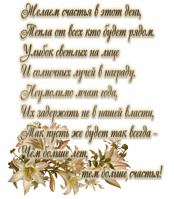 Пусть счастья будет полон дом. И станет, без сомнения, великолепным, светлым, благим деньком день твоего рождения.