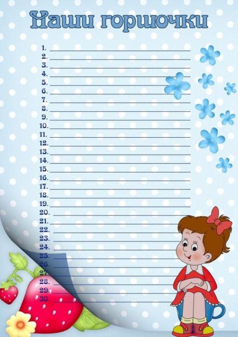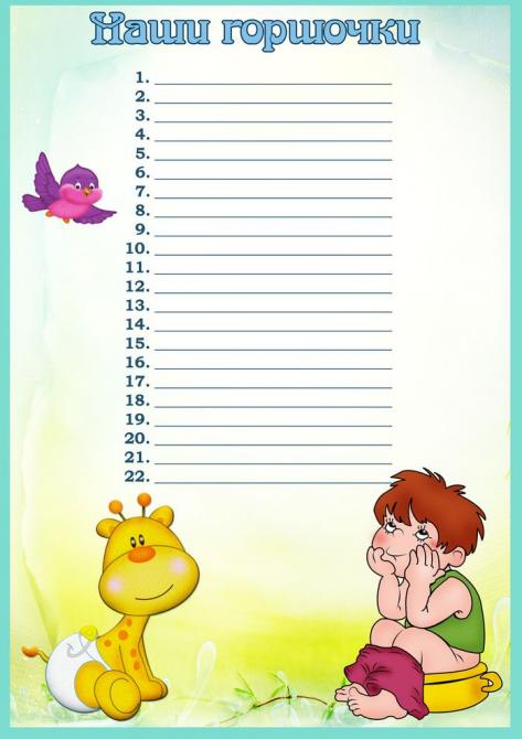Там, где большое скопление жителей нашей планеты, постоянно начинается неурядица, а ежели это к тому же детки, то… Поэтому в ребяческом саду поименные перечни на горшки просто необходимы. А потому что это дошкольники, то и оформление у этих списков обязано быть подходящее. В данной статье мы собрали для вас фото картинки для дизайна перечня на горшки, и шаблоны, которые можно на халяву скачать и распечатать.