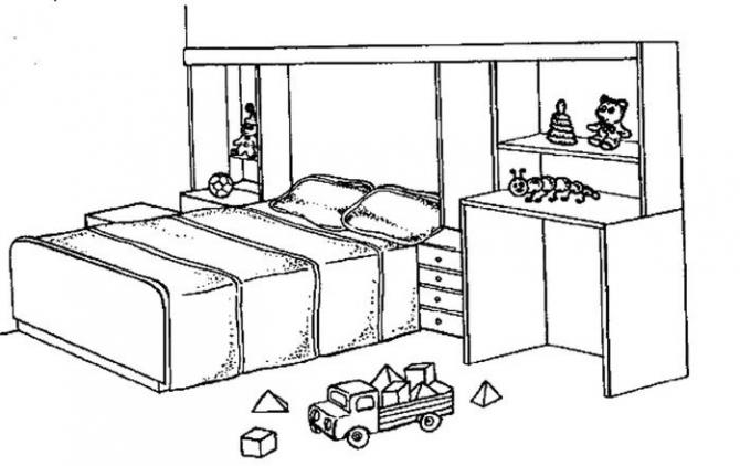 Шкаф и комод с тумбочкой для дошколят в картинках.