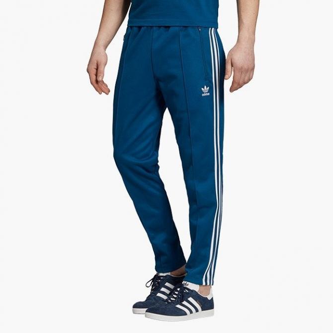 Голубые спортивные штаны.