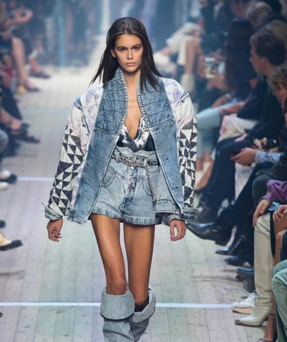 Джинсовая одежда девушки.