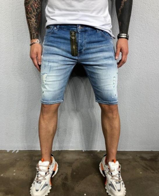 Голубые шорты парня.