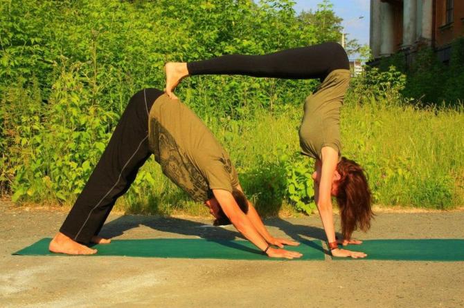 Йога это целый комплекс из полезных упражнений для тела. Ей можно заниматься целыми группами жителей нашей планеты. Характерной особенностью йоги является философский взор на мир. Представляем вам фото картинки йога на двоих, которые тут вы сможете посмотреть.