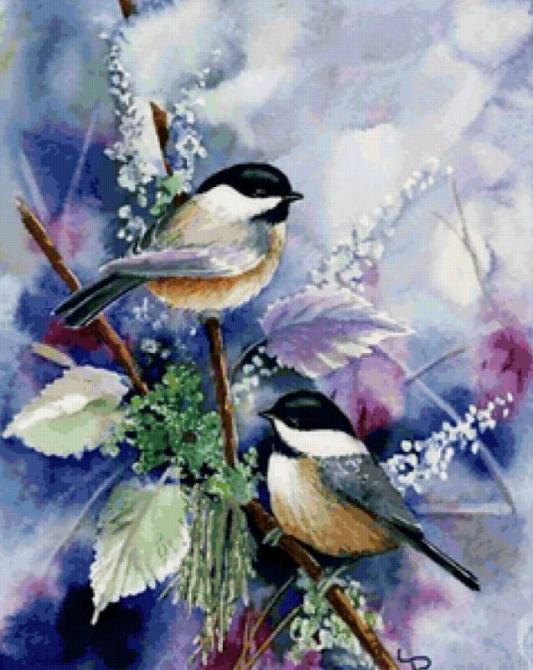 Две птицы на ветке.