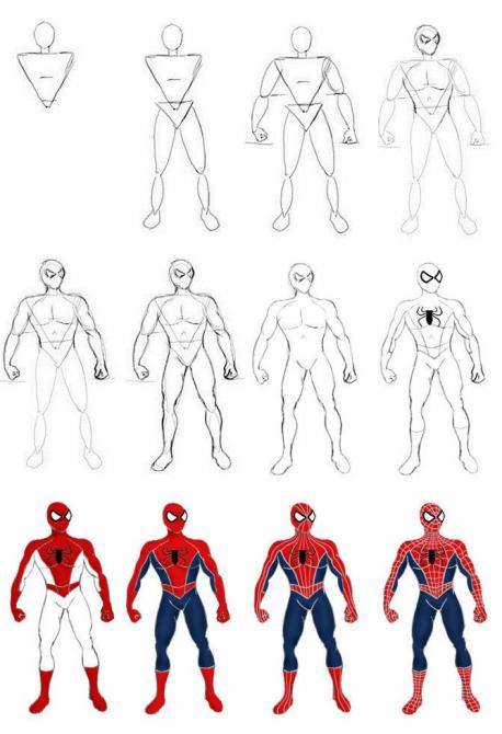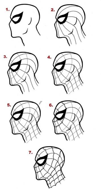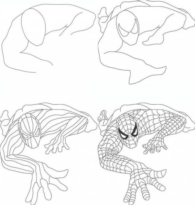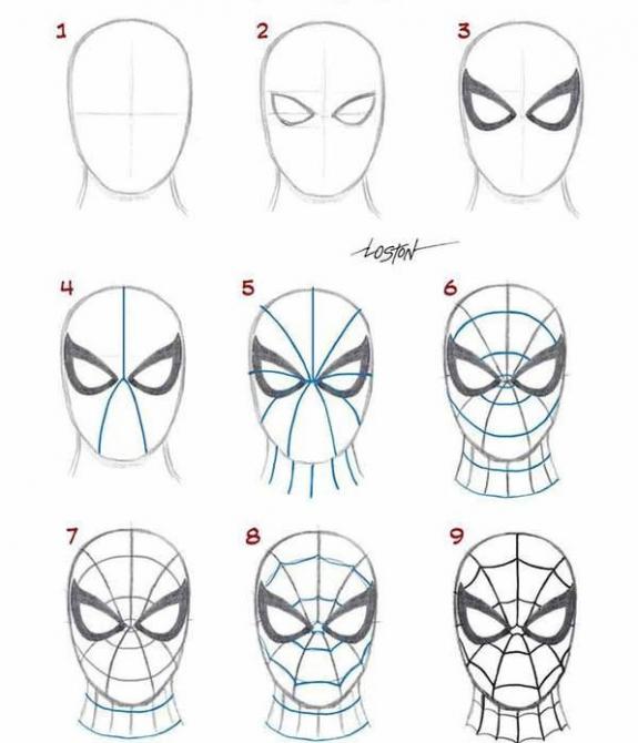 Поэтапная картинка Человека-паука.