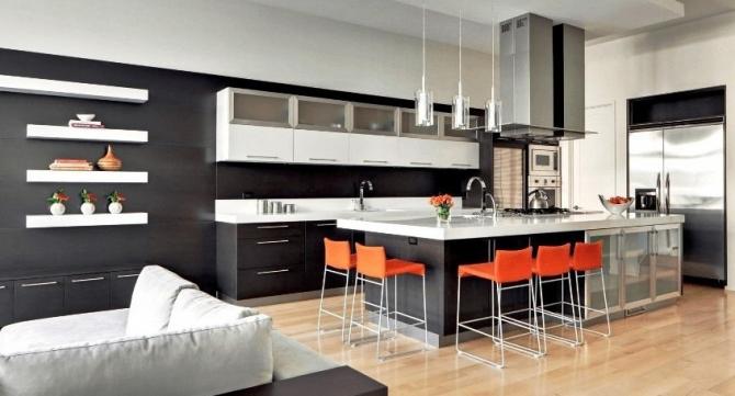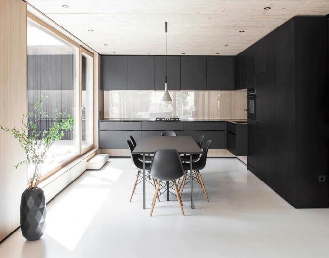 Черные стены в столовой.