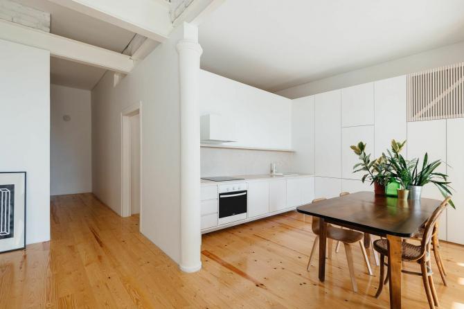 Ясная кухня с растением.