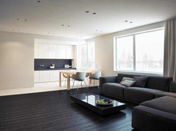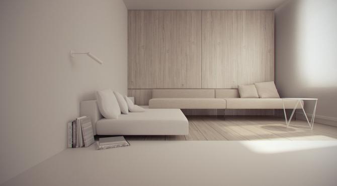 Просторный миниатюризм комнаты.