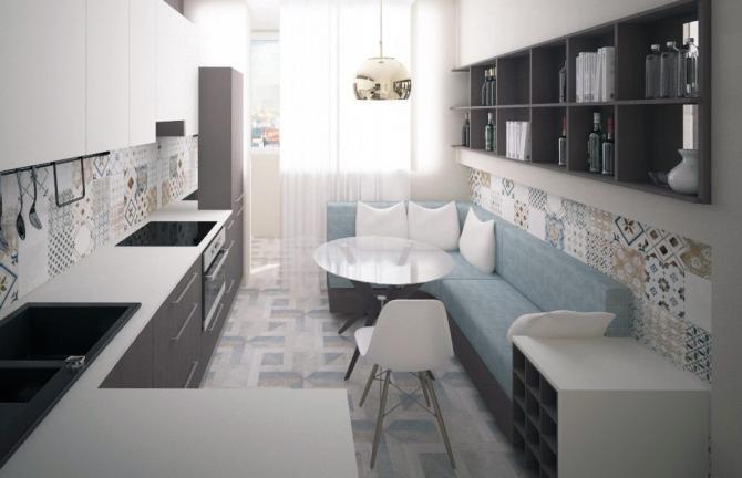 Голубий диванчик в кухне.