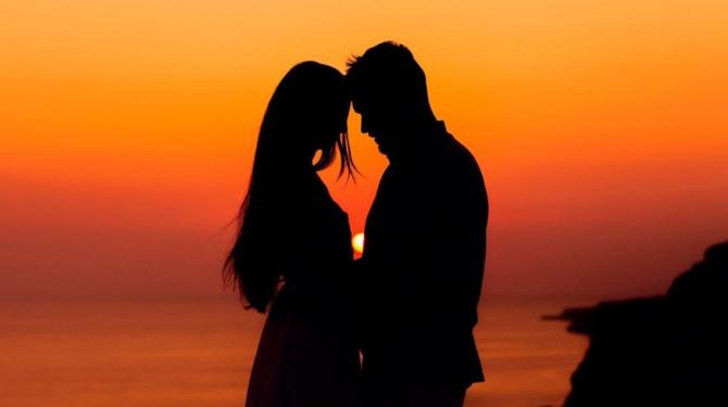 Влюбленная пара на закате солнца.