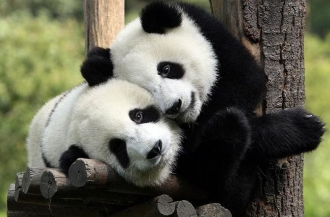 Панды проявляют нежность.