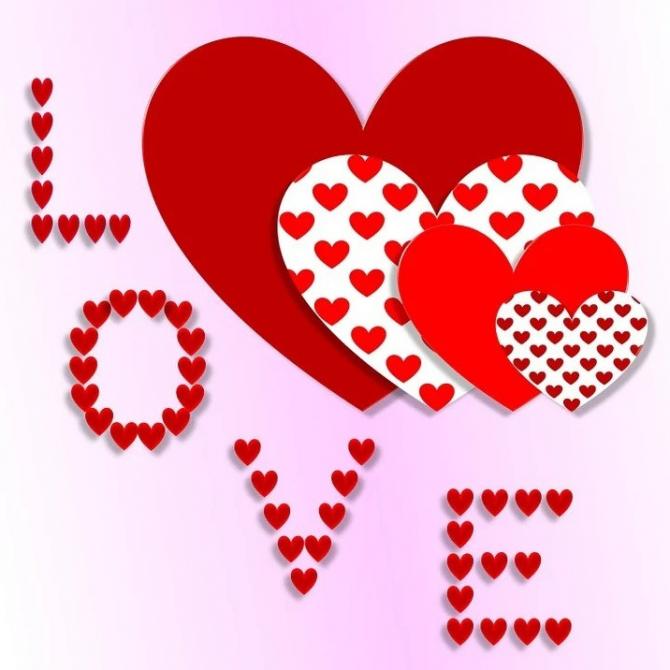 Разноцветные сердечка с надписью.