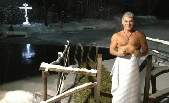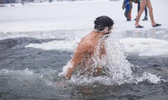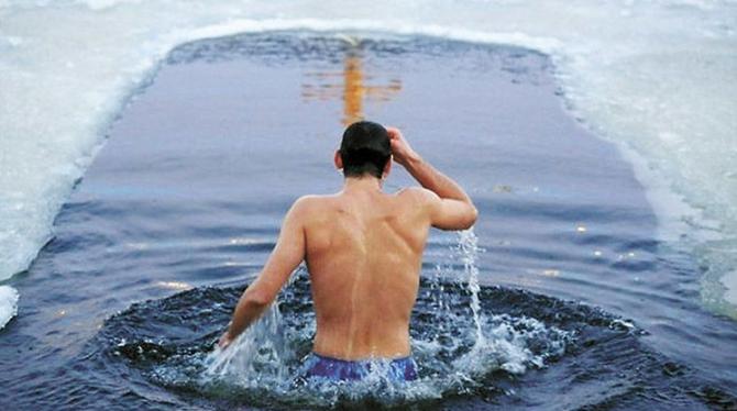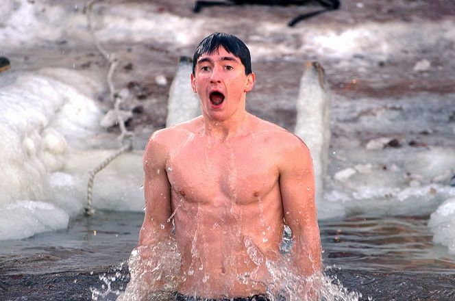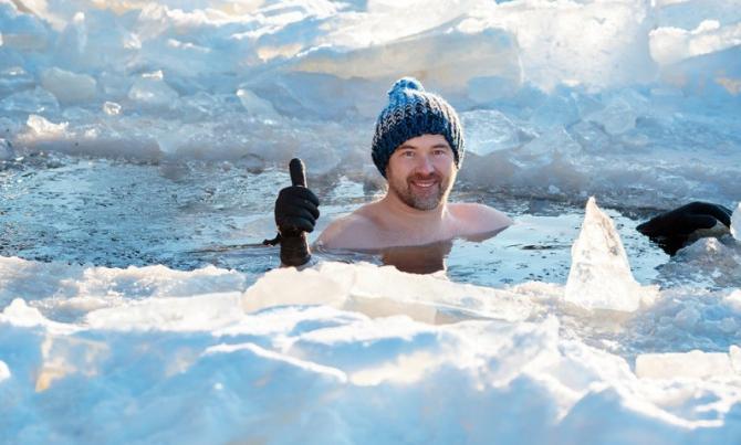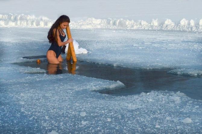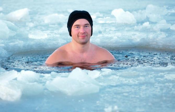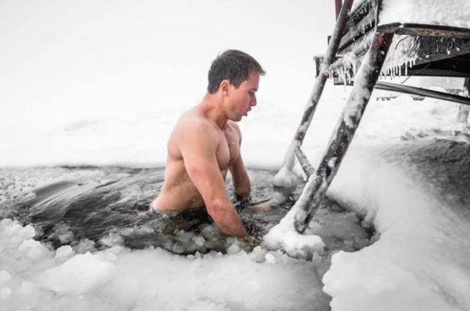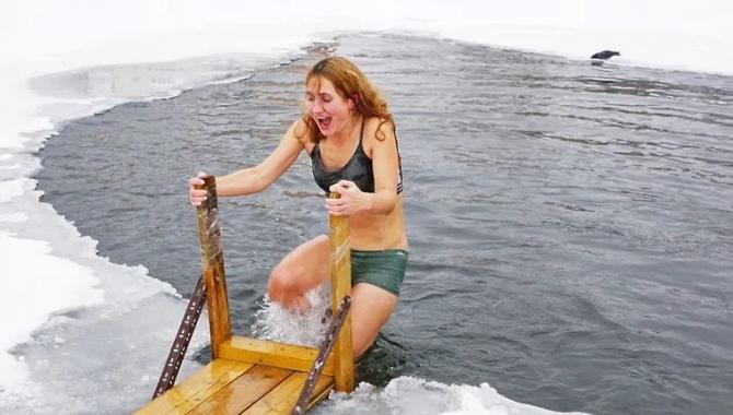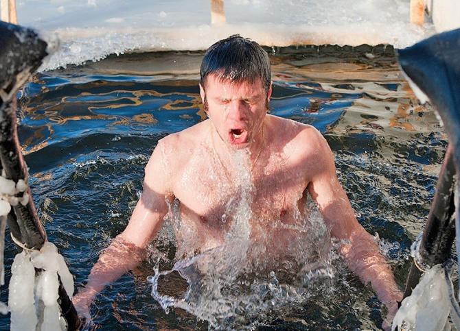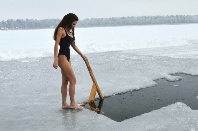 Холодное ныряние в прорубь.