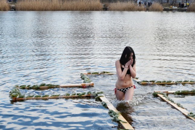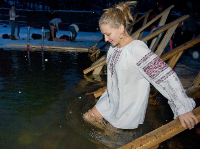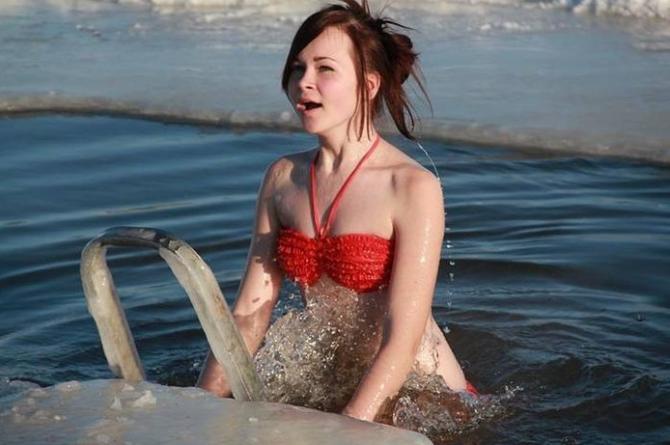 Крещенское купание девушки.