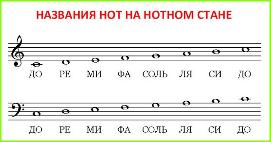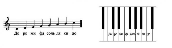 Ноты До, Ре, Ми, Фа, Соль, Ля, Си.
