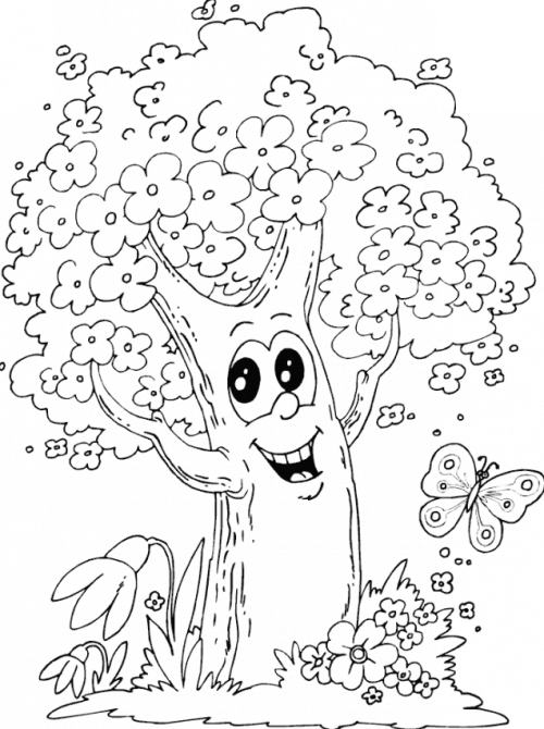 Цветущее дерево для раскраски.