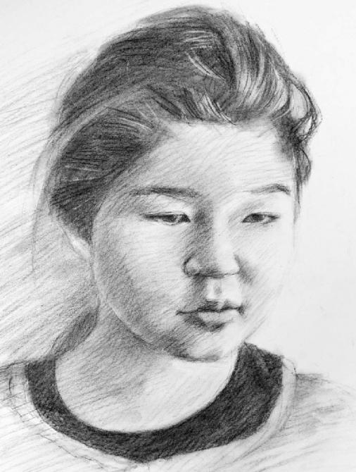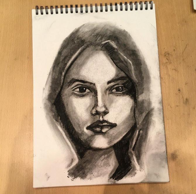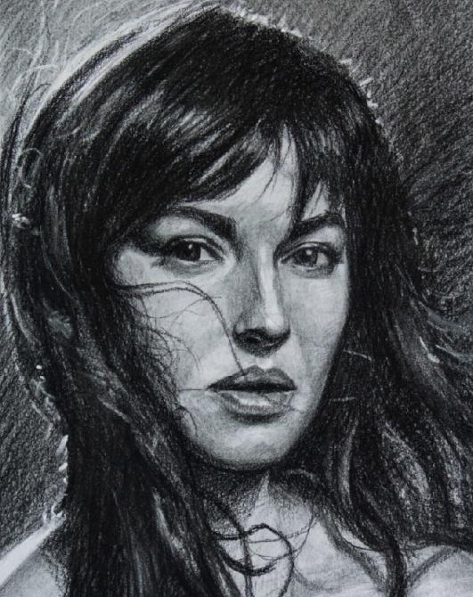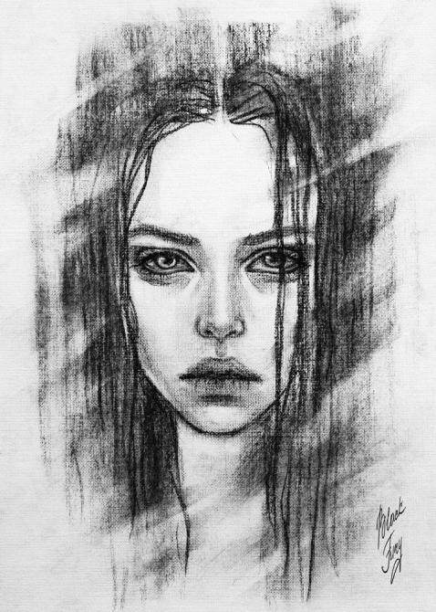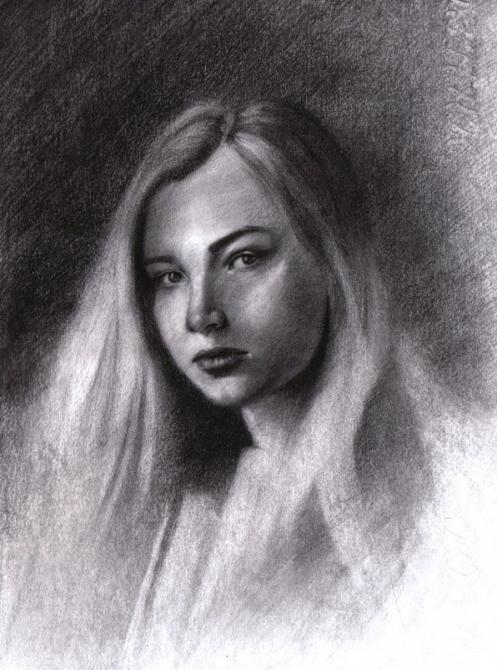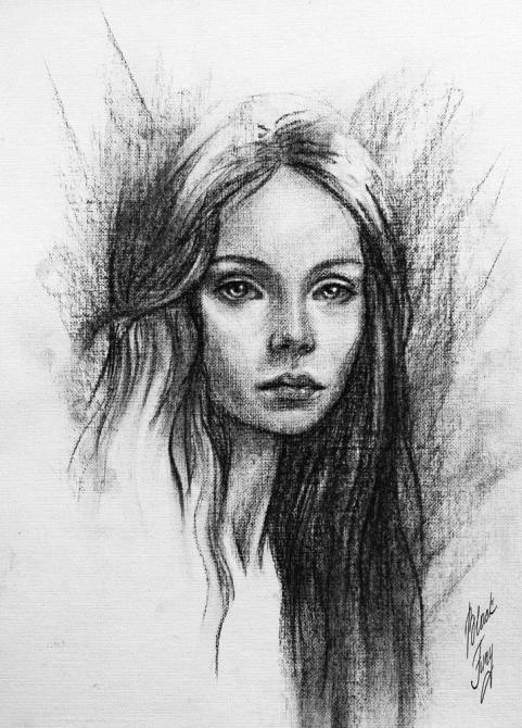 Прекрасный набросок девушки углем.