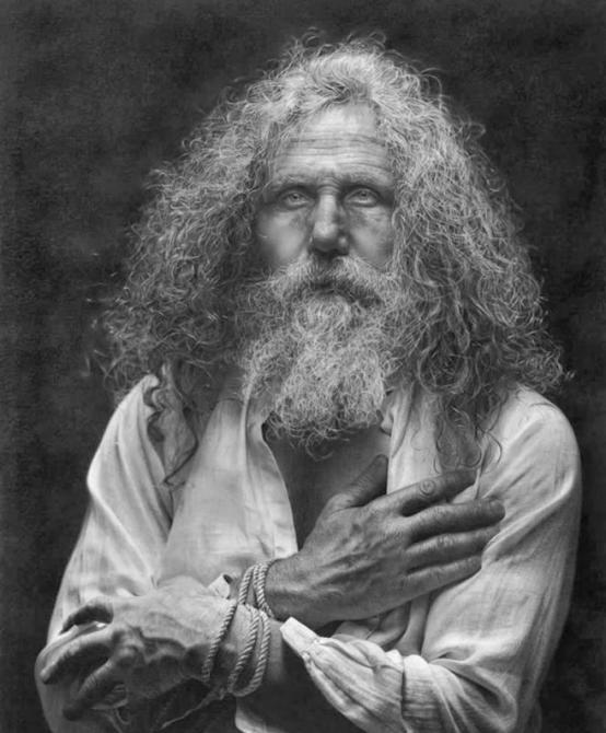 Волосатый старик с бородой.