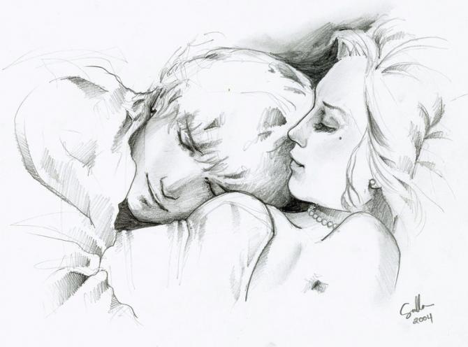 Теплая картина влюбленных углем.