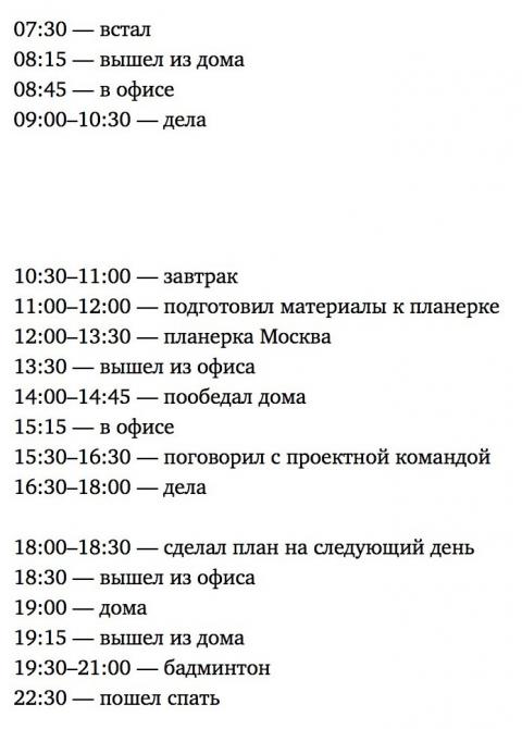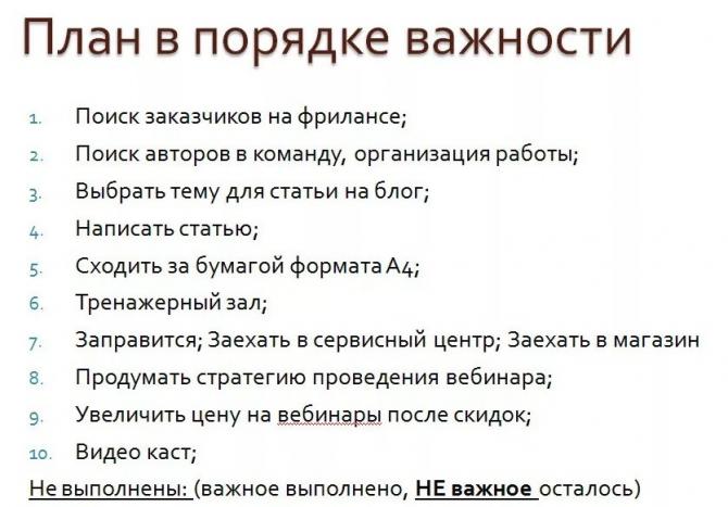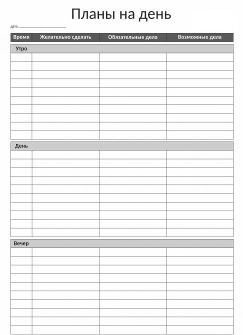 Планы на день.