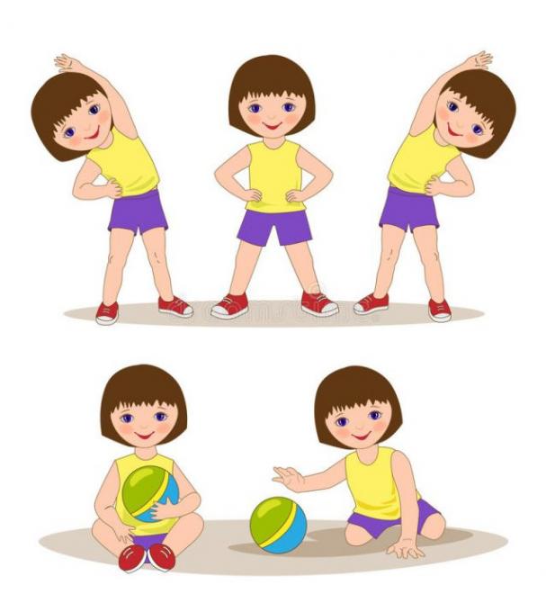 Дальше предлагаем посмотреть рисунки, где детки делают зарядку.